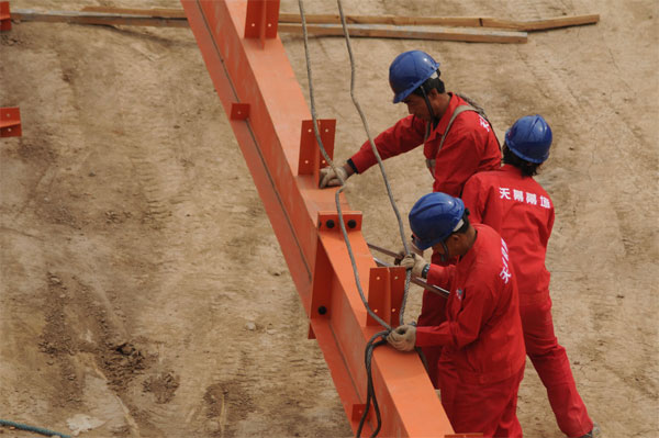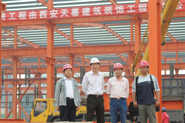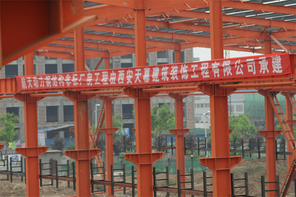 陜西航天動力非標(biāo)設(shè)備廠房鋼結(jié)構(gòu)工程由西安天幕建筑裝飾工程有限公司承建,位于高新錦業(yè)一路。建筑面積23618㎡。于2009年2月22日正式開工,到目前為止,1-5軸主體已全部完工,5-8軸吊裝屋梁。