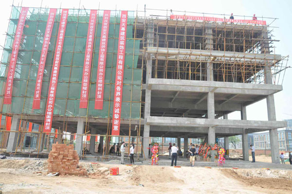我公司辦公樓工程于2009年3月13日奠基,由奠基到主體封頂歷時(shí)119天。本工程得以順利的封頂與建設(shè)單位、監(jiān)理單位、及其他合作單位和社會(huì)各界朋友的支持是分不開的!